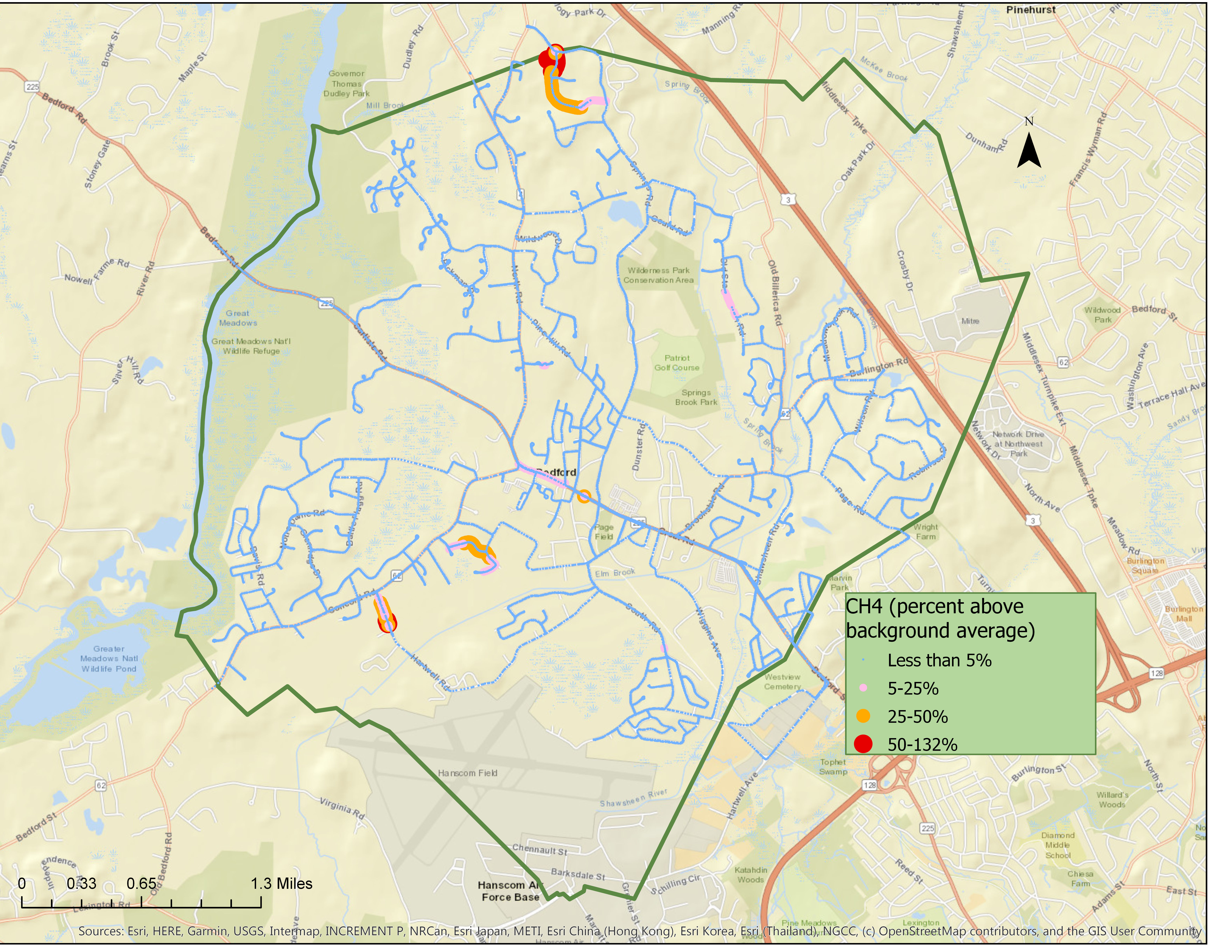 Our researched showed that some Bedford neighborhoods had methane leaks that increased methane concentrations up to 132% higher than background levels.